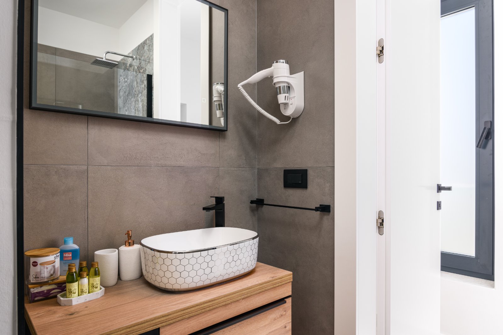 Towels, Bathrobe, Toiletries, Hairdryer